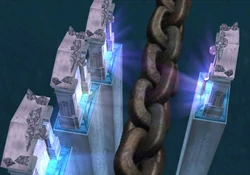 Das Schloss schwebt über dem Meer und ist über massive Ketten mit dem Festland verbunden. Überquert man eine dieser Ketten, findet man drei weiße Portale auf der linken Seite vor, die zu unterschiedlichen Orten auf der Weltkarte führen, zudem erscheint ein viertes Portal auf der rechten Seite, wenn man es auf der Weltkarte nutzt, um zum Schloss zurückzukehren.