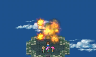 Der Turm explodiert und verschwindet völlig. Galuf wartet am Tunneleingang, aber Xezat erscheint nicht.