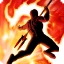 Du springst zum Ziel und greifst alle umstehenden Gegner mit einer feuerbasierten Attacke an.