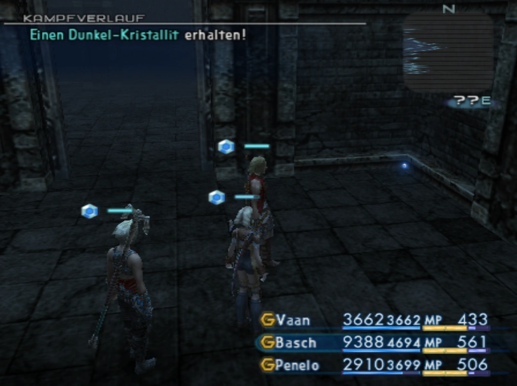 Nun zu seinen Angriffen. Der Düstergott beherrscht starke licht- und dunkelelementare Angriffe wie Lichtersäulen, Dunkelheit und Nega, weshalb ihr besser Schwarze und Weiße Masken mitbringt, um diese Attacken absorbieren zu können. Alternativ zu den Masken tun es auch der Dämonenschild gegen Dunkelheit und der Weisenring gegen Licht. Dann ist da noch ein harter physischer Angriff mit hoher Mehrfachtreffer-Quote – nicht nur deswegen solltet ihr ständig im Protes-Zustand sein. Außerdem noch im Repertoire sind diverse fiese Tricks, die einen großen Vorrat an Äthern und Allheilmitteln von euch verlangen – Paniga, das eure MP stark reduziert, Bannga, Defixga, Gemachga, Fluch und Anti, das eure momentanen TP und MP miteinander vertauscht. Damit dürften eure TP in den kritischen Bereich fallen, also heilt das besser schnell, bevor noch ein Angriff des Düstergottes oder eines seiner Untergebenen kommt. Ist der Düstergott alleine, wird es erst so richtig interessant. Nun spricht er starke offensive Zauber wie Flare, dem ihr euch nur mit Vallga widersetzen könnt, und Sanctus. Wenn seine TP unter 50% gefallen sind, haut er auch noch Kollaps raus – den Zauber wollt ihr ohne Vallum und Doppel nicht über euch ergehen lassen! Im kritischen Zustand schließlich bevorzugt der Düstergott den Angriff via Schock und Cruoris, wobei letztgenannter Zauber auch den Sturz-Zustand erteilen kann. Außerdem spammt er unentwegt Paniga, sodass es für Magier äußerst schwer wird, hier irgendwas zu reißen – das ist gerade deswegen problematisch, da der Düstergott im kritischen Zustand mächtig an Abwehrkraft zulegt und dann nur mit Magie anständig angegriffen werden kann. Umgehen könnt ihr dieses Problem aber mit einem angelegten Schildkrötenkollier, das euch erlaubt, Zaubersprüche mit Gil statt mit MP zu bezahlen. Teilt einen Gefährten für kontinuierliche Heilung ein, das erleichtert diese Schlacht enorm. Packt für ihn außerdem die Technik Sammeln, genug (Hi-)Äther und X-Potions ein – mit Letzteren kann er in der Schlussphase des Kampfes heilen, wenn der Düstergott mit Dauer-Paniga ankommt. Der Rest kümmert sich um positive Zustände und teilt aus, wobei lichtelementare Waffen wie Exkalibur und die Heiligenpike sehr willkommen sind, ebenso wie Vigra, da der Feind zu den Untoten zählt wie so ziemlich alles in diesem gottverdammten Subterran. | |||||