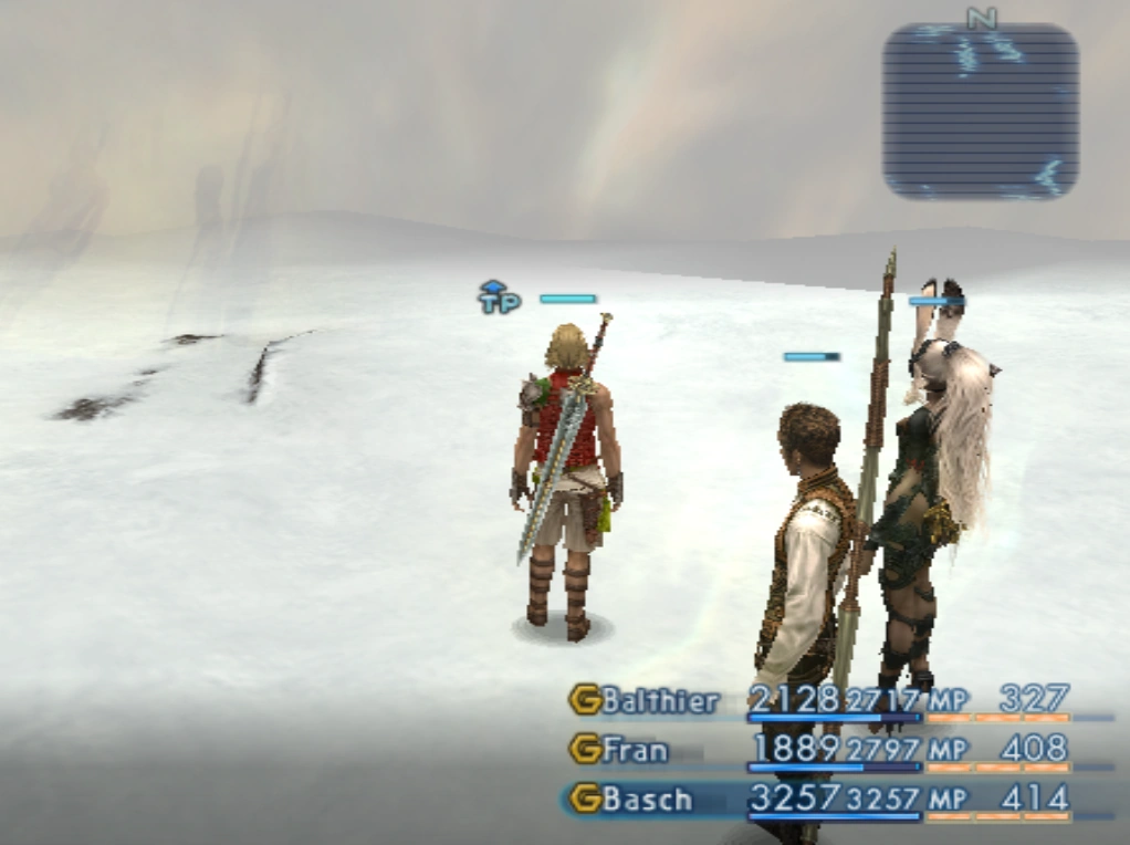 In der Wasserstadt Halmika fällt den Gefährten schließlich ein gigantisches, kristallartiges Dingens im Zentrum Giruvegans auf… Keiner weiß, was das sein könnte, und alle haben offenbar einen gewaltigen Kloß im Hals, nur Vaan findet alles ganz fürchterlich toll und aufregend. Idiot. Lauft nach der Szene weiter durch ein Portal zu einem Speicherkristall, den ihr sicher, klug wie ihr seid, auch ohne meinen Hinweis nutzen werdet, und dann schließlich durch noch ein Portal zum Tor des Feuers. Dort lauft ihr auf der Westseite hoch und, oben angekommen, nach Nordwesten, wobei ihr an der Ostwand entlanglauft. Dabei dürftet ihr auf halbem Wege einen weiteren unsichtbaren Pfad entdecken, der genau auf das gigantische, kristallartige Dingens zuläuft. Beschreitet ihn, um am Ende von noch einem Wächter Giruvegans überfallen zu werden…