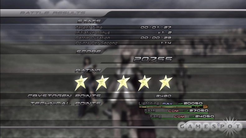 Nachdem ein Kampf siegreich abgeschlossen wurde, wird der Kampf des Spielers mit bis zu fünf Sternen bewertet; außerdem wird die Kampfdauer angezeigt. Diese Erfolge sind mit dem „Belohnungssystem“ der Playstation 3 und der Xbox 360 verbunden. Siehe dazu auch: Trophäen und Erfolge (FFXIII)