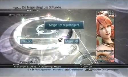 Final Fantasy XIII ist das zweite Spiel der Reihe nach Final Fantasy II, das auf Erfahrungspunkte und ein Levelsystem bei den Charakteren verzichtet. Stattdessen erlernen die Charaktere neue Fähigkeiten im Kristarium, welches spielerisch wie das Sphärobrett aus Final Fantasy X oder das Lizenzbrett aus Final Fantasy XII funktioniert. Es existiert für jeden Charakter ein eigenes Kristarium mit den sechs Hauptrollen Brecher, Verheerer, Verteidiger, Manipulator, Augmentor und Heiler. Entlang seiner zur Verfügung stehenden Rollen kann ein Charakter hier seine Kristallpunkte (KP) einsetzen, um für die gewünschte Rolle neue Fähigkeiten zu erwerben. Auch Verbesserungen der Angriffs- und Zauberwerte sowie Erhöhungen der Trefferpunkte werden hier vorgenommen.