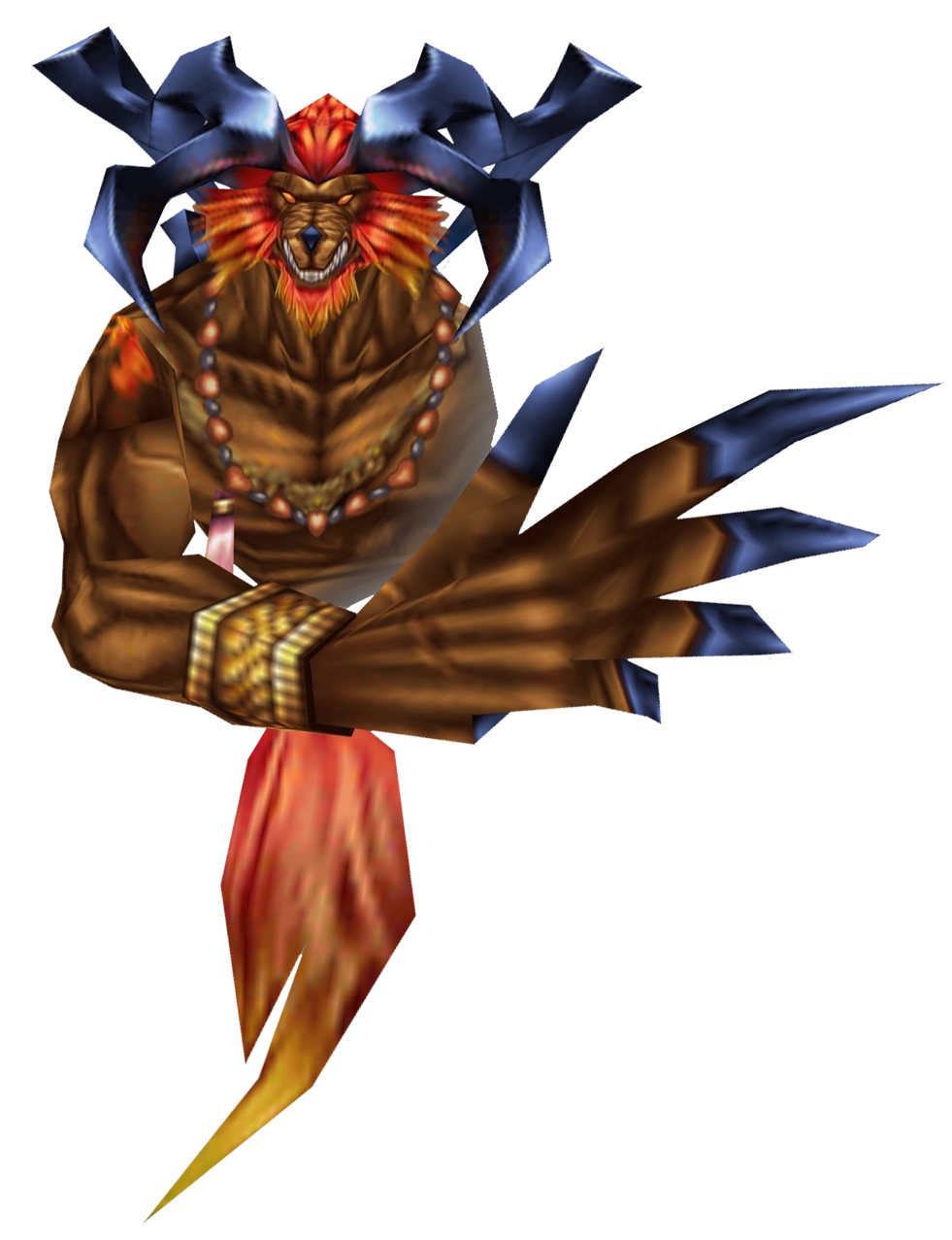 Wie bei allen seinen Auftritten stellt er in diesem Teil auch den Repräsentanten des Elements Feuer dar und greift im Kampf alle Gegner mit seinem feuer-elementaren Angriff namens Inferno an, nachdem er gerufen wurde.