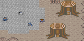 Nach dem Kampf klappt Kalia wegen ihrer Vergiftung zusammen, die sich ominöserweise im Kampf überhaupt nicht bemerkbar gemacht hat. Da eilt auch schon ihre Mutter auf einmal, wie aus dem Nichts herbei und fragt, was denn los sei (Wo kam sie auf einmal her? Hat sie uns verfolgt? Immer diese Stalker...). Wie sich herausstellt, muss Kalia ein gewisses Kraftelixier zu sich nehmen, um wieder gesund zu werden; dieses befände sich im Sand Tempel. Selbstlos wie wir sind, versprechen wir, uns nach diesem Elixier auf die Suche zu machen (tse, unser Protagonist will doch in Wahrheit nur bei ihr punkten... Männer ;P). Kalia überreicht uns noch eben feierlich ihre Axt, ehe sie von ihrer Mutter fortgetragen wird. Nun könnt ihr euch Zutritt zu den verbleibenden Truhen des Waldes verschaffen, indem ihr mit der Axt die Bäume beiseite räumt. Die Waffen kann man übrigens sehr bequem mit den Schultertasten durchwechseln. Macht danach noch einen kurzen Abstecher nach Foresta, um euch für eine Komplettheilung hinzulegen. Dann geht es auf zum Sand Tempel!
