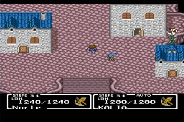 Prügelt euch durch die beiden Schlachtfelder bis nach Windia, die Stadt des Windes. Hier windet es ganz schön, wa? Seht ihr die Fensterläden? Und das tosende Geheul? UND!!! Die Wetterhähne? Man könnte meinen in einem Orkan zu sein, und dennoch sind die Leute hier voll lässig unterwegs und kümmern sich gar nicht drum. Sogar die Hintergrundmusik versprüht herrlichste Picknickstimmung. Im Haus rechts vom Eingang findet ihr Otto, der seine Tochter Norma vermisst, die über die Regenbogenbrücke lief und seitdem im Turm dahinter festhängt. Irgendwie gelingt es Kalia daraus einen Zusammenhang zum Kristall auf einem Berg in der Nähe zu ziehen, also heißt das wohl, dass das unsere nächste Station sein könnte. Ihr könnt übrigens via Greifhaken aufs Dach des INNs schwingen, aber das hat keinen Effekt außer dem coolen Gefühl, einmal Spiderman zu sein. Im linken Haus könnt ihr ein Faunenherz kaufen, das euch vor Stumm, Blind und (ENDLICH!!!) Konfus schützt. Greift zu!