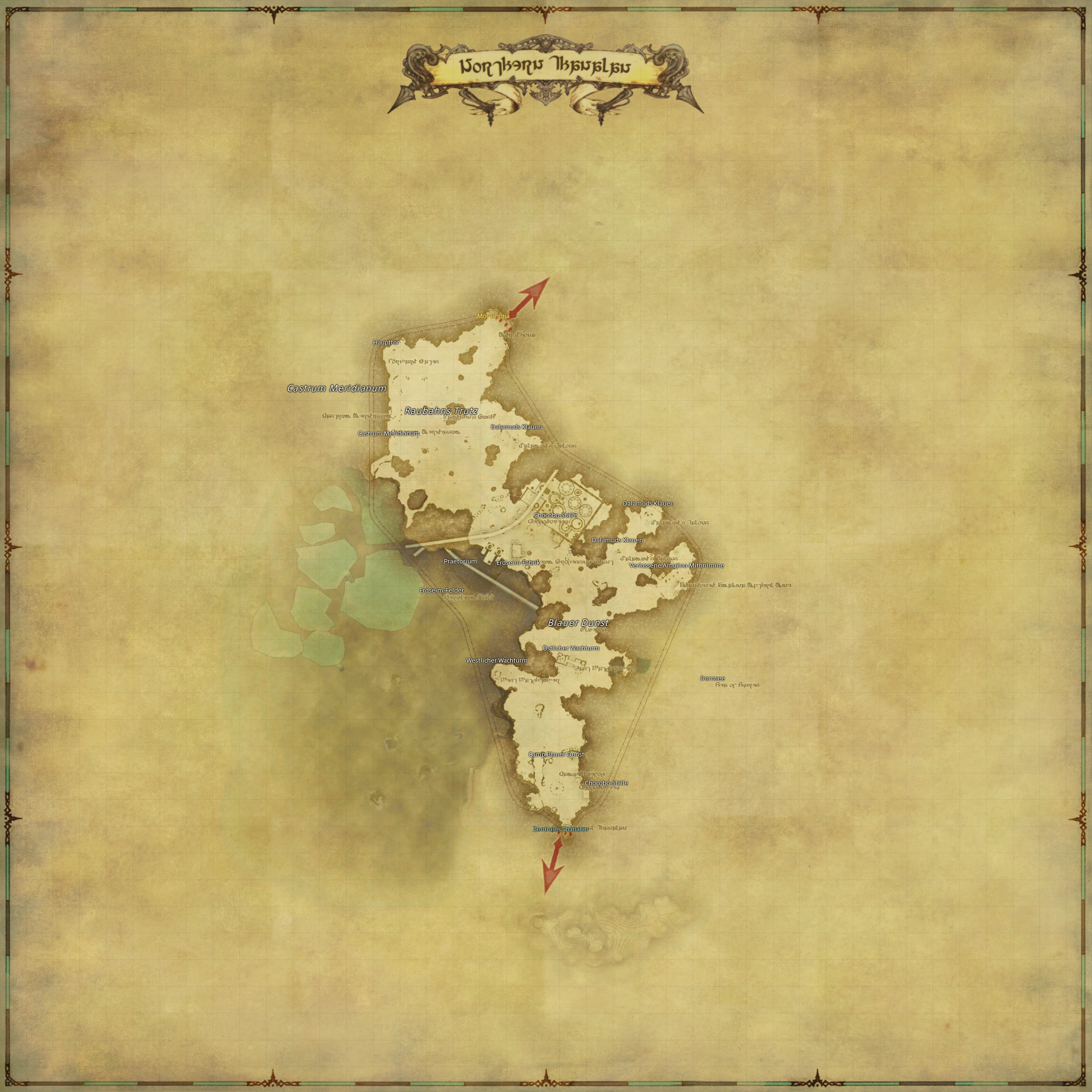 Im Norden des Areals haben die Garlear mit Castrum Meridianum einen großen Stützpunkt angelegt. Innerhalb dieser Festung wurde das Praetorium errichtet, welches als Kommandozentrale dient. Die Garlear haben es auf die Erdseim-Vorkommen auf den nahegelegenen Erdseim-Feldern abgesehen, welches für ihre Kriegsmaschinerie verwendet werden kann.