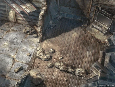 Die Bühne liegt westlich der Klassenräume. In ihr steckt ein Blindgänger, den die Schüler aus Angst vor einer potenziellen Detonation entfernen wollen. Zu bekommen: