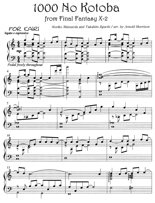 | "Eternal Wind" - Tema Principal de Final Fantasy IV - "Ahead on our Way" - "Tina" - Main Theme of Final Fantasy VII - "Calling" - "Blue Fields" - "Over the Hills" - "To Zanarkand" - "Somnus" |