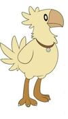 Estos seres alados, como aves que son nacen a partir de huevos, y su onomatopeya que es クエ, kue, en japonés ha variado a lo largo de las diferentes entregas, siendo: