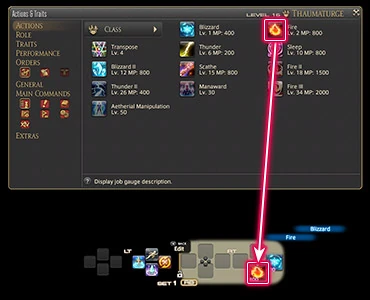- Duty Action: Una ranura extra de acción, independiente de la interfaz de los Hotbars. Esta contiene una acción especial exclusiva del combate, cuyo efecto sirve para superar cierta mecánica del combate en curso.