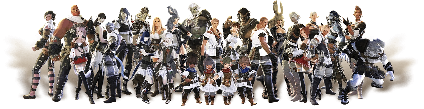 Actualmente hay ocho razas para elegir, aunque dos de ellas solo disponibles mediante la expansión Shadowbringers. A continuación se muestran las seis razas disponibles con la versión básica del juego: