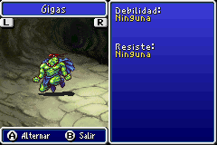 - Gigas brillante (Solo en la versión Dawn of Souls, 20th anniversary e iOS).