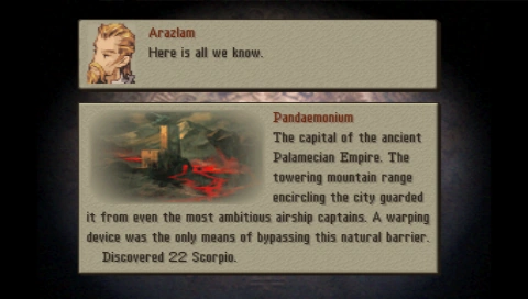 Pandaemonium es mencionada como una de las maravillas en Final Fantasy Tactics. Es descrita de la siguiente manera: