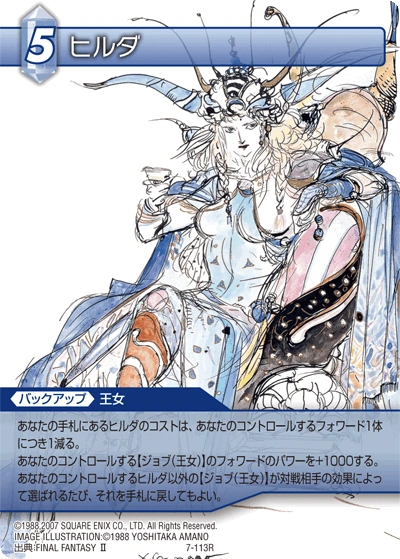 Hilda aparece en Final Fantasy Trading Card Game con su ilustración hecha por Yoshitaka Amano y su ilustración en Dawn of Souls.