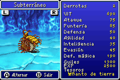 El subterráneo es un enemigo en Dawn of Souls y las sucesivas versiones del Final Fantasy original. Es altamente resistente a la magia y además suele usar el hechizo sismo en batalla. Se encuentra en cala de susurros en los niveles de hielo, entre el S30 y el S40.