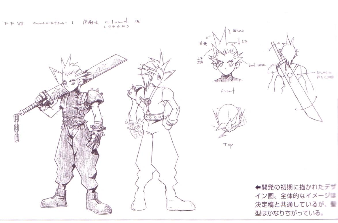 Au tout début, Cloud devait être beaucoup plus soumis au contrôle de Séphiroth. Après la chute de Séphiroth dans les tréfonds du réacteur, sa volonté de vivre se manifesterait en Cloud, car il aurait eu besoin d'un corps pour obtenir la Matéria noire. Les souvenirs de Cloud auraient même été une illusion créée par Séphiroth lui-même. Cloud aurait ensuite appris que Séphiroth voulait prendre le contrôle de son corps, et la volonté de Séphiroth sur son esprit ainsi que les traumatismes de Cloud aurait créé la fausse personnalité de Cloud. Cette version fut reprise et modifiée par la suite, pour devenir celle que l'on connaît : la fausse personnalité de Cloud créée à cause de Jénova et de l'histoire de Zack Fair.