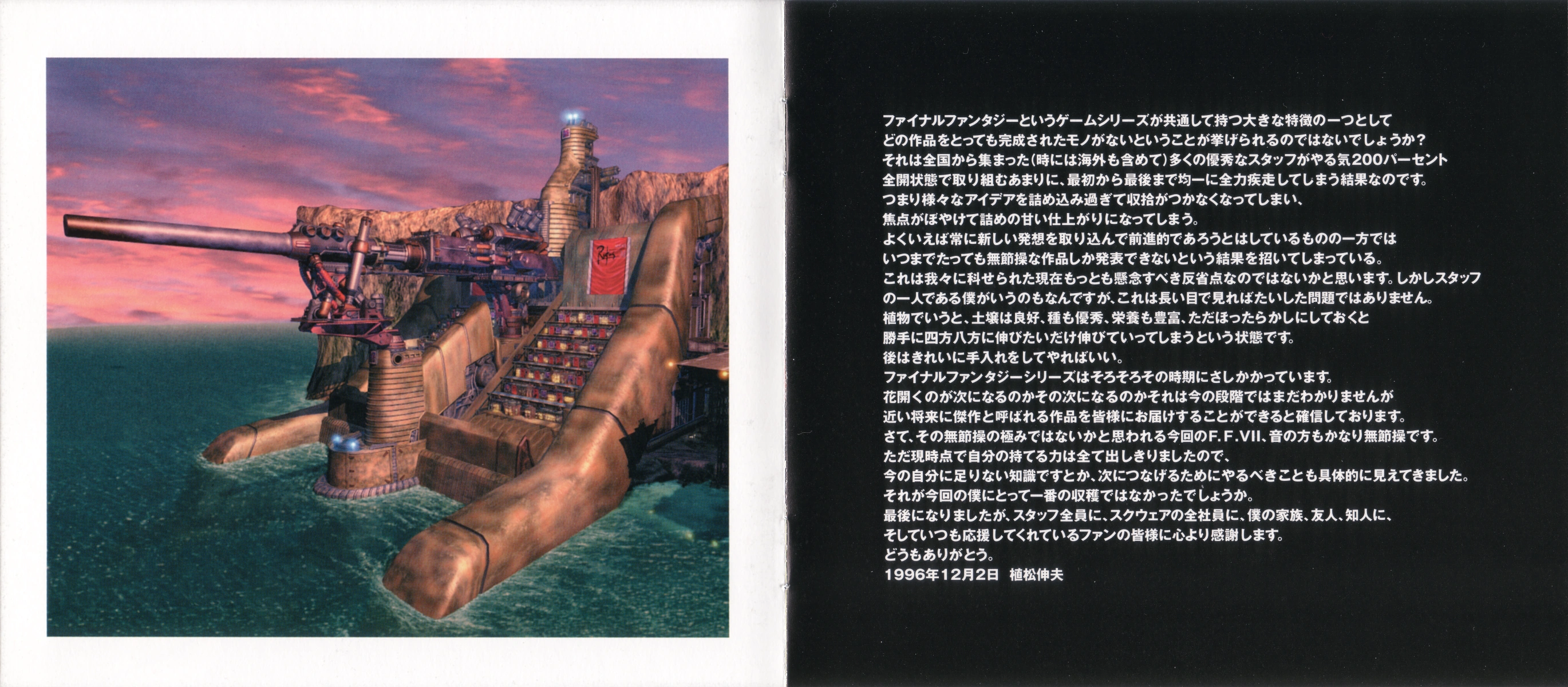 Final Fantasy VII Original Soundtrack (ファイナルファンタジーVII オリジナル・サウンドトラック) est sorti au Japon le 10 février 1997. Cet album est composé par Nobuo Uematsu.