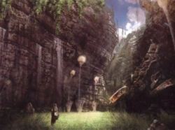 - « Une vallée creusée per l'érosion et les déformations du terrain. Lightning et ses compagnons y ont installé leur camp après avoir effectué un atterrissage forcé lors de leur fuite de Cocoon. Elle est parsemée de restes de machines de la civilisation de Gran Pulse, abandonnées là depuis des siècles, comme semblent en témoigner les sédiments la végétation qui les recouvrent. »