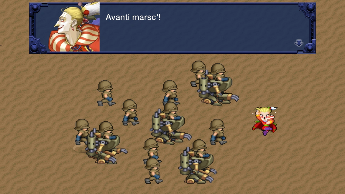 - Mago di corte dell'impero, Kefka è guidato unicamente da un'ossessiva ricerca del piacere. Con il potere degli esper e della Triade della discordia nelle sue mani, il mondo intero sarà devastato da questo clown psicopatico.