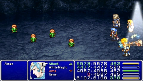 Curiosamente, se l'incantesimo è usato fuori dalla battaglia su un personaggio con vitalità pari a zero, lo resusciterà, ma questo avrà comunque 0 PV. In battaglia, i PV saranno portati a 1. Rubicante la userà su tutto il party se colpito da un attacco di fuoco mentre si copre con il mantello.