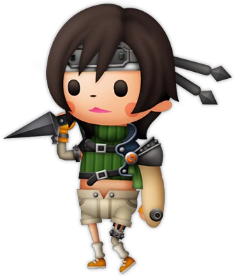 Yuffie appare inizialmente con il suo costume classico, ma tramite evento può ottenere anche il costume basato su Advent Children.