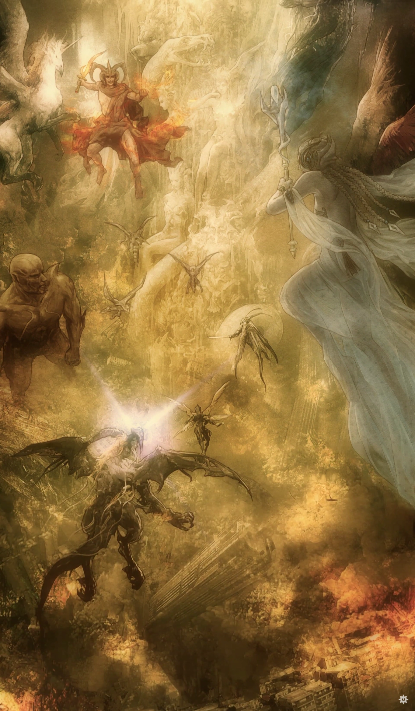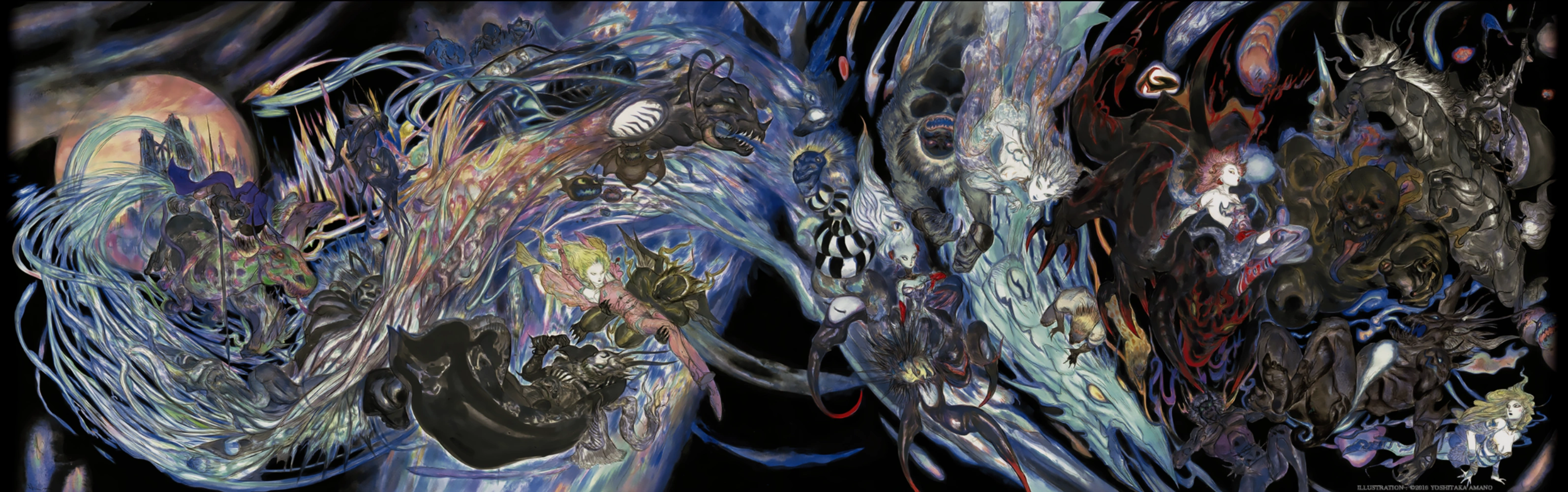Большой взрыв, картина Ёситаки Амано, на которой изображены различные существа из игры.