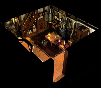 В доме находится сундук с оружием Миротворец (Peacemaker). Игрок также может выглядывать в окно.