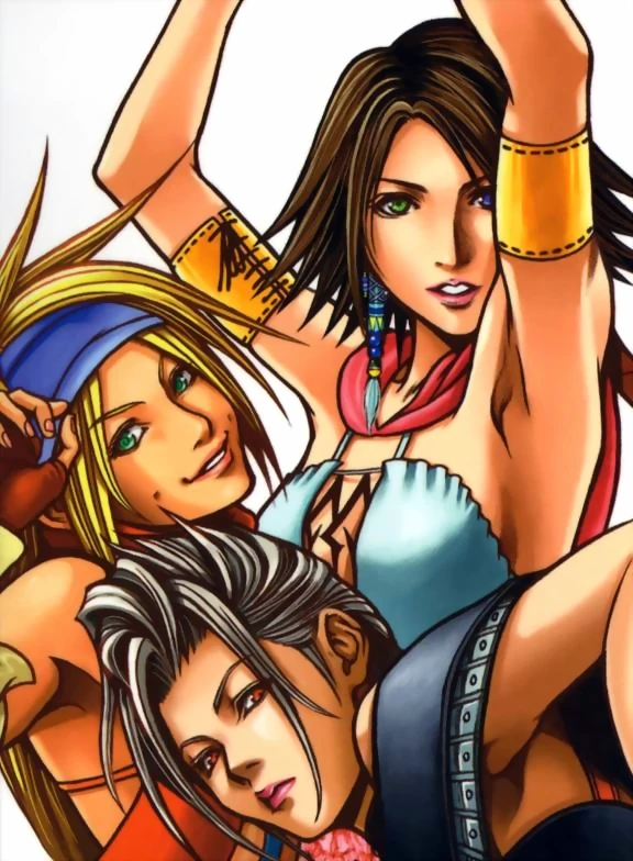 Игровые персонажи (слева направо): Рикку, Юна и Пейн.