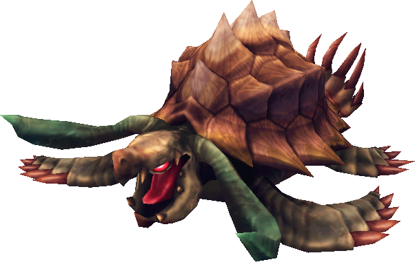 The Adamantoise appears on the Forgotten Continent as a regular enemy. The Shell Dragon is its larger cousin with a unique character model, and acts as a boss later in the game.