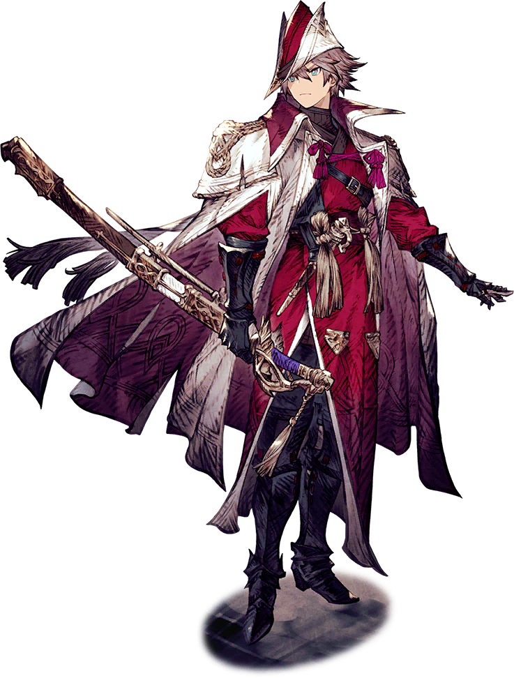 His Trust Master Reward is the Vermilion Sword weapon which bestows HP +102, ATK +82, MAG +96 and Magic Attack Up 15.