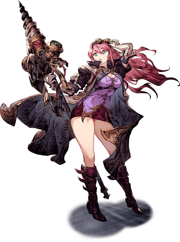 Hailing from Industrial City Dilmagia, Aileen is a machine engineer who specializes in designing technical weaponry and small arms. At one point, she was tasked to create weapons for the airships constructed there, but she decided leave on a journey of self-improvement instead.
