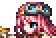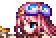 Aileen has blue eyes and waist-length pink hair with a pair of goggles on her forehead, though tilted to the side.