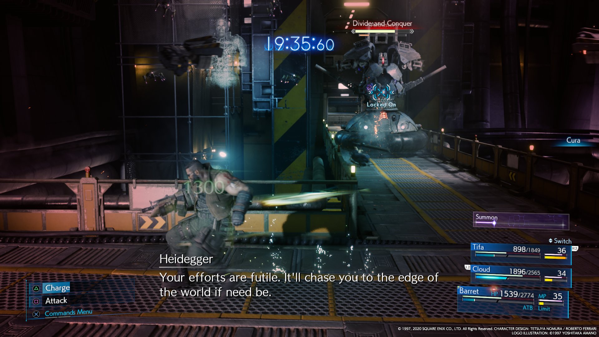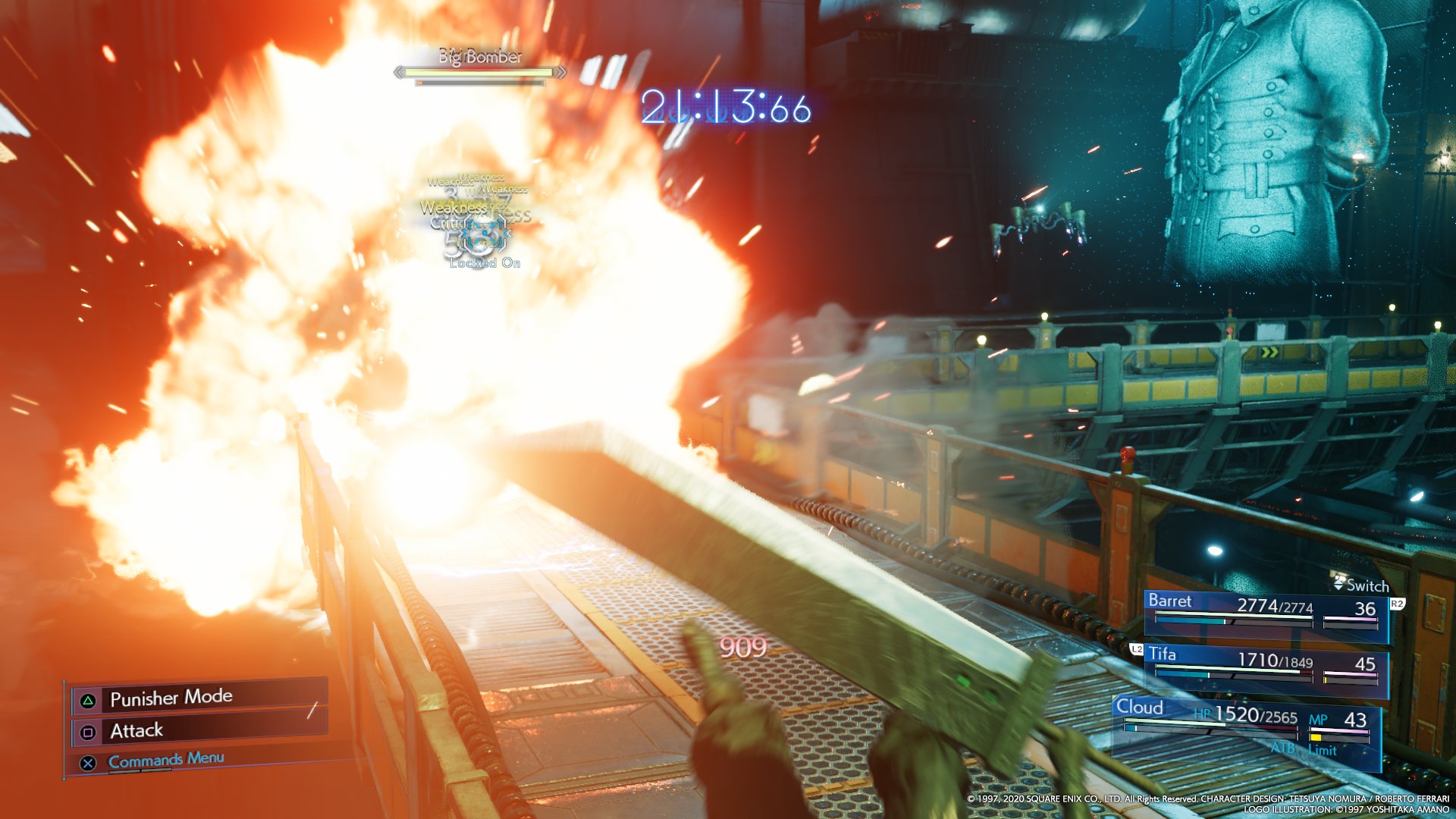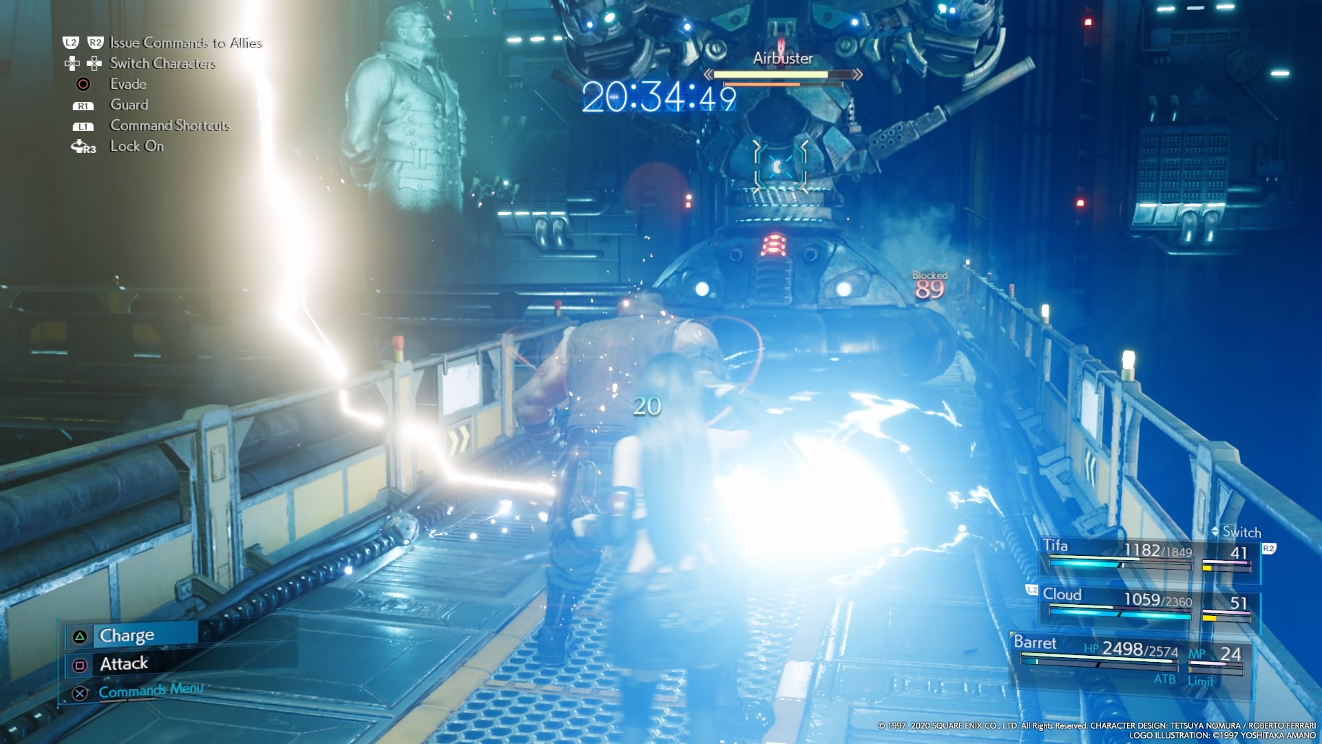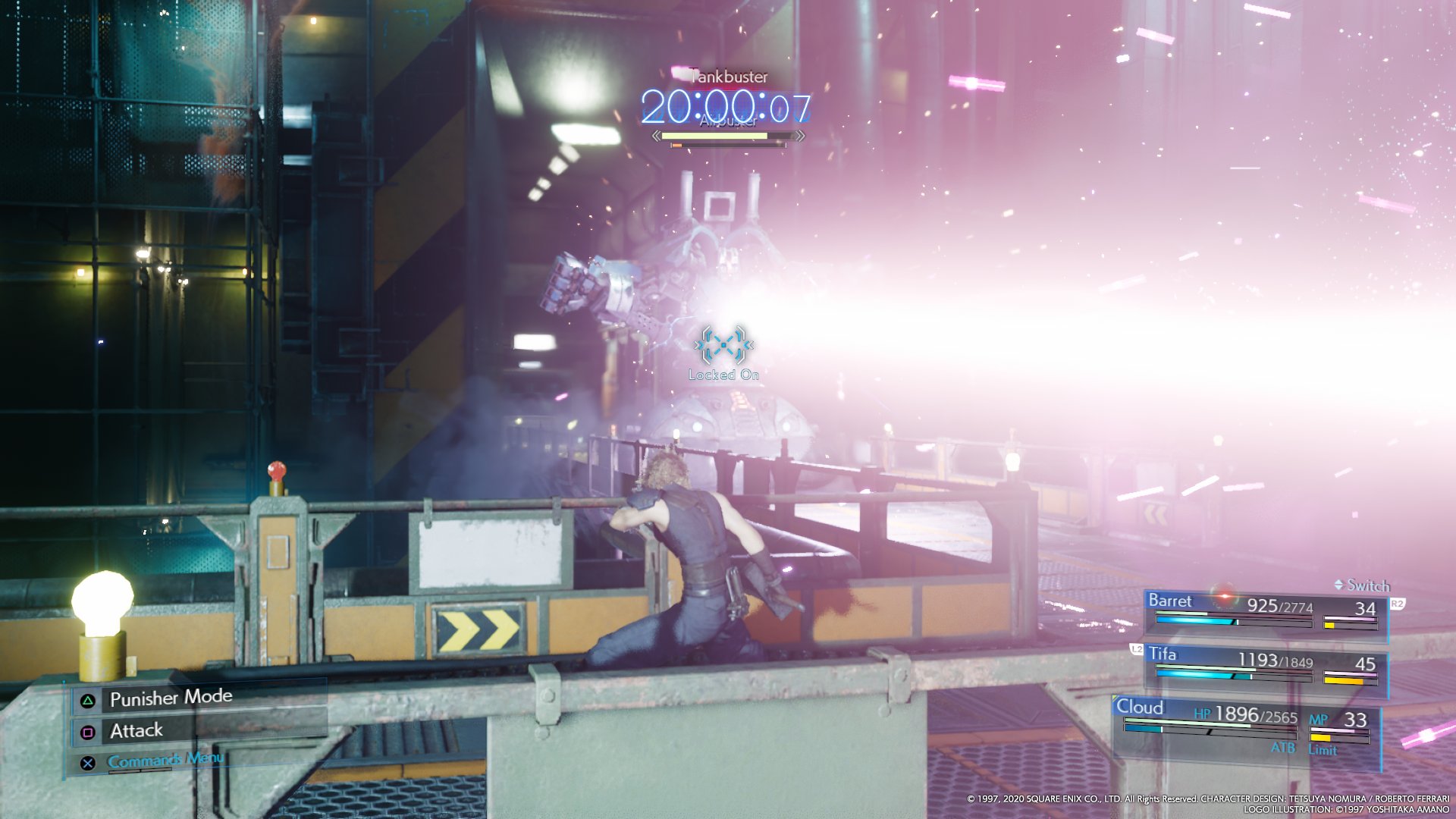 The player should be on the lookout for the electrified mines deployed by the boss. When the Airbuster uses Tankbuster, the player can avoid it by maneuvering away from the beam's range to the sides of the catwalk, then resume onslaught until it is used again. Since Barret has access to ranged attacks, he can stay far away and attack the Airbuster while it remains stationary firing its energy beam. During phase two, when the Airbuster detaches its arms, Cloud can get close to them and use Punisher Mode tactics, and lightning magic is also effective to destroy them fast.
