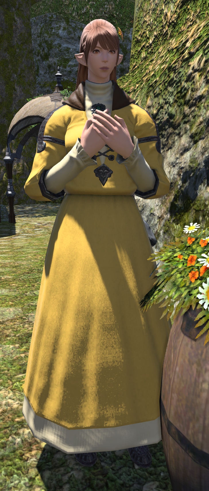 Aloyse received a marriage proposal from Ezolmile, an Ishgardian nobleman who was currently undergoing treatment in Gridania. Although Aloyse was delighted at the prospect of such a happy life with her beloved, she still worried that she was not a noble. She wrote a letter accepting the request, but shortly after sending it she unsurely begged the postmoogle Kupka Kupp to rescind her letter and fled before the moogle could even direct her.[1]