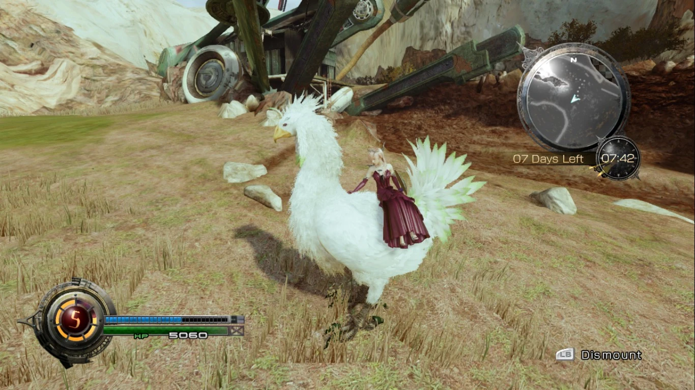 Lightning automatically climbs off her steed when talking to certain people or during other events. The player can name the white chocobo in the original console releases, although no one outside the party will refer to him by that name. In the PC version, it is impossible to change the chocobo's name.