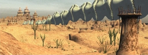 The Meriphataud Mountains are a dusty wasteland lying east of Fort Karugo-Narugo and north of Tahrongi Canyon, which is inaccessible during the war. The mountains are famous for the massive landmark, Drogaroga's Spine, that divides them in half. The Yagudo have constructed watchtowers all along Meriphataud in defense of their nearby capital, Castle Oztroja.