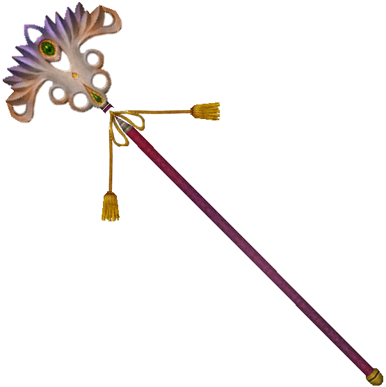 A staff from the faraway world of Spira. Modifying gear in Spira is commonplace, so there are many different pieces of gear that hold various powers, even if they look and feel similar. This staff looks very similar to the staff used by a traveling summoner who ventured out into the world to defeat the great fiend Sin.