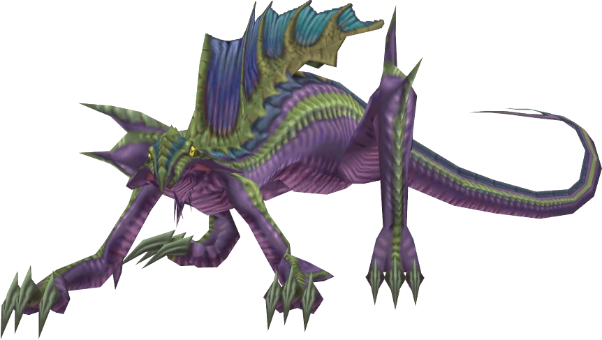 Archaeothyris is an enemy from Final Fantasy X-2. It uses Iguion's model from Final Fantasy X. Its low Magic Defense and weakness to Ice make it an easy foe to deal with. However, the player should be on guard with Softs as it can inflict Petrification, and it is also useful to carry lots of Antidotes to counteract Poison Fang.