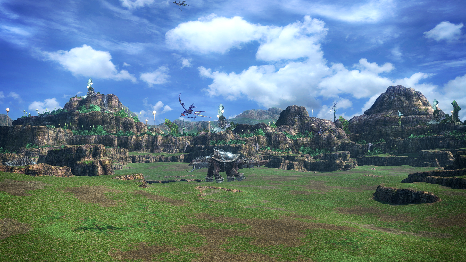The Archylte Steppe is the main location for completing missions, which task the party with felling various monsters for various rewards. The system is reminiscent of the hunt system from Final Fantasy XII. Doing some missions dispels the palings that allow access to different parts of the steppe. Some Cie'th Stones become waystones for fast-travel after their mission is completed. Doing the missions on the "Cie'th Stone circle" on the steppe evolves most of the oretoises, the Adamantoises becoming the superboss Long Gui, which is not a mission in itself, but does unlock an achievement.