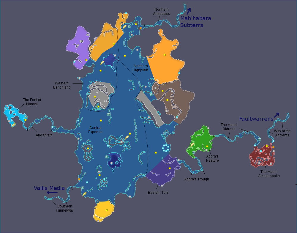 A map of the Archylte Steppe (the top) and the Yaschas Massif (the bottom).