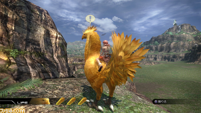 There are locations in the Archylte Steppe that can only be accessed with a chocobo marked by a yellow circle on the field map. Chocobos can leap over wide gaps or high cliffs, which usually hide pathways to hidden ruins. Chocobos are easily found in these locations marked by a feather on the map. When the player dismounts, the chocobo usually waits for their return.