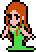 Aria is a young girl with long blonde hair with a small braid in the back tied with a blue ribbon and the rest tied in a ponytail. She has blue eyes and wears a long, plain, white halter-dress.