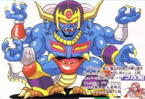 When the party reaches the top of his tower, Ashura awaits at the top of a set of stairs. He tells the party that he was about to send someone to tell them that one of his minions micronized and went into Ki's body. He also further says that Ki was born with MAGI in her body which gave her the power of healing. If he gets those MAGI, she will die. Killing two birds with one stone, but now that the party is before him. Boasting further, he says that he'll kill them and that will make it three birds.
