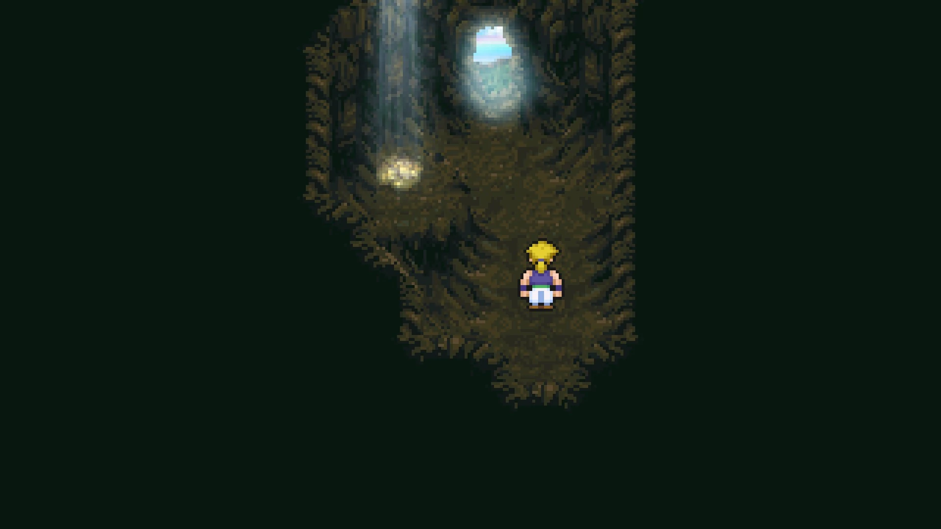 Sabin, Shadow, and Cyan arrive here looking to flee from Doma and the Gestahlian Empire. Shadow, unwilling to leap down the falls, leaves them to continue alone. Sabin and Cyan jump down the falls, fighting monsters on the way. When they wash up on the Veldt, they are saved by a wild boy named Gau.
