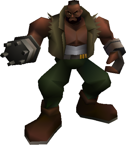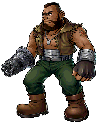A faction leader of the anti-Shinra militant group Avalanche. Barret is filled with a burning hatred for Shinra, a company he claims is destroying the planet. His right arm has been modified into a firearm, allowing him to attack his enemies at long range.