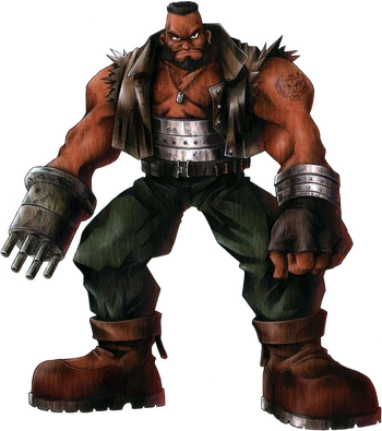 Barret Wallace is a major recurring character in the Final Fantasy VII series. He is a playable character in Final Fantasy VII and Final Fantasy VII Remake, and has supporting roles in other titles. He is the leader of a cell of the eco-terrorist group Avalanche, trying to prevent Shinra Electric Power Company from using mako, the life source of the planet, as a form of energy.