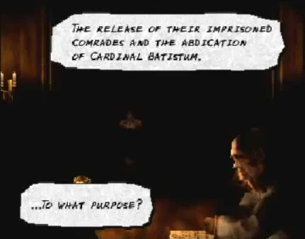 Cardinal Batistum (法王バドゥイズム, Houou Baduizumu?) is a minor character in Vagrant Story. He never appears in the game itself, but manipulates the actions behind the scenes. The Cardinal is the head of the Priesthood of St. Iocus and leader of the Order of the Crimson Blades, and he orders them to capture the Müllenkamp leader, Sydney Losstarot, so that they can take control of the Dark and obtain immortality. However, his man in charge of the operation, Romeo Guildenstern, does not follow orders and tries to take the power of Leá Monde for himself. The Cardinal's fate is never revealed.