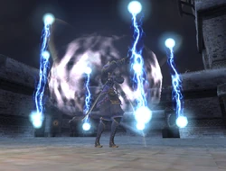 Battery Charge (バッテリーチャージ, Batterī Chāji?) is a Blue Magic spell in Final Fantasy XI learned from Magic Pots in Final Fantasy XI. It gradually restores MP for 5 minutes at 3 MP per tick for a total of 300 MP. It is self-cast only, but can be spread to other party members when used after Diffusion. It costs 3 Blue Magic Points to set. When set, it grants MP +10 and MND +1. It takes 5 seconds to cast and can be recast every 75 seconds.