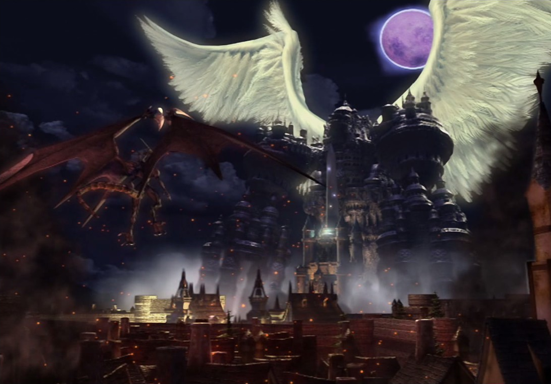 Eiko and Garnet combine their magic by bringing the four crystal shards together and summon Alexander who spreads its gigantic angel wings to shield the castle and deflect Bahamut's energy blast. Alexander unleashes beams of energy that defeat Bahamut while Kuja watches on in fascination of its power.